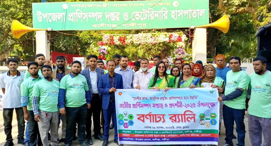 স্মার্ট লাইভস্টক, স্মার্ট বাংলাদেশ’ গড়ার প্রত্যয়ে ব্যাপক উৎসাহ ও উদ্দীপনার মধ্য দিয়ে কালীগঞ্জে প্রাণিসম্পদ সম্পদ সপ্তাহ-২০২৫ উপলক্ষে জমকালো আয়োজনে প্রদর্শনী ও র্যালি অনুষ্ঠিত হয়েছে। প্রাণিসম্পদ ও ডেইরি উন্নয়ন প্রকল্প (এলডিডিপি) ও প্রাণিসম্পদ অধিদপ্তরের অর্থায়নে দিনব্যাপী এ- অনুষ্ঠানের আয়োজন করেন উপজেলা প্রাণিসম্পদ দপ্তর ও ভেটেরিনারি হাসপাতাল।