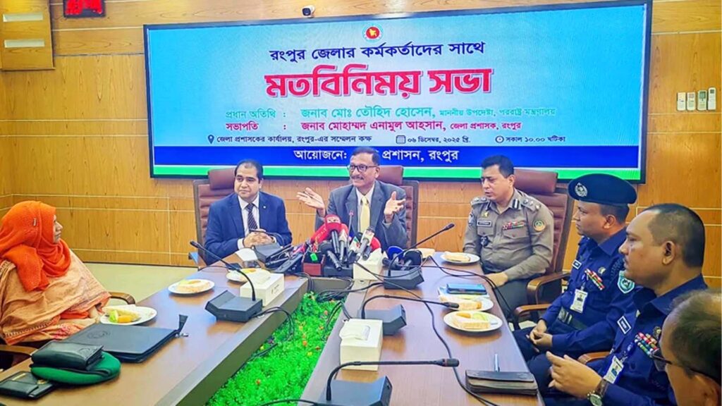 শনিবার (৬ ডিসেম্বর) সকাল ১০টায় জেলা প্রশাসকের সম্মেলন কক্ষে রংপুর জেলার সরকারি কর্মকর্তাদের সঙ্গে মতবিনিময় সভায় প্রধান অতিথির বক্তব্যে তিনি এসব মন্তব্য করেন।