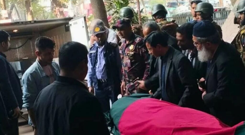ময়নাতদন্ত শেষে শহীদ হাদির মরদেহ পুনরায় জাতীয় হৃদ্রোগ ইনস্টিটিউটের হিমঘরে নেওয়া হয়েছে। সেখানে গোসল শেষে মরদেহটি জাতীয় সংসদ ভবনের দক্ষিণ প্লাজায় নামাজে জানাজার জন্য নেওয়ার প্রস্তুতি চলছে।