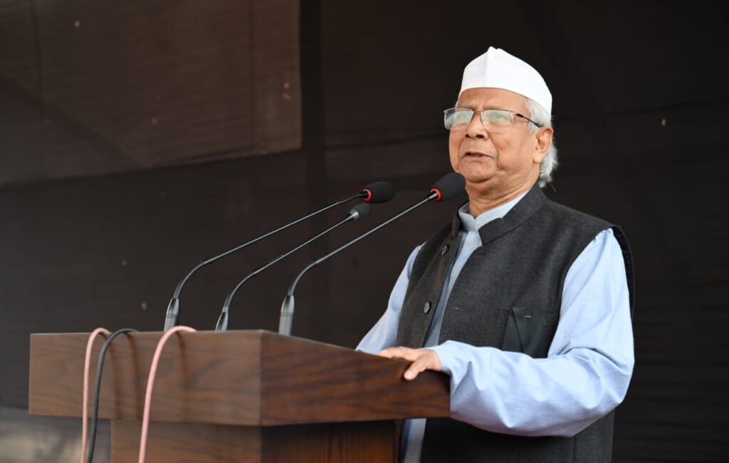 প্রধান উপদেষ্টা বলেন, ‘যে মন্ত্র তুমি দিয়ে গেছো, দুনিয়ার সব কাজে আমরা সেটা প্রমাণ করব। আমরা দুনিয়ার সামনে মাথা উঁচু করে দাঁড়াবো, কারও কাছে মাথানত করব না। যে মন্ত্র তুমি দিয়ে গেছো, আমরা সেটা পূরণ করে যাব।’