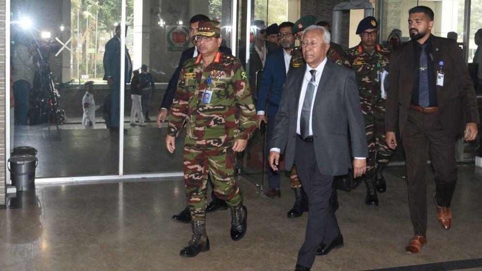 রোববার (২১ ডিসেম্বর) দুপুর ১২টায় রাজধানীর আগারগাঁওয়ে নির্বাচন ভবনে সিইসির কক্ষে এই বৈঠক শুরু হয়। বৈঠকের আগে একে একে নির্বাচন কমিশন ভবনে প্রবেশ করেন সেনাবাহিনী, নৌবাহিনী ও বিমান বাহিনীর প্রধানরা।