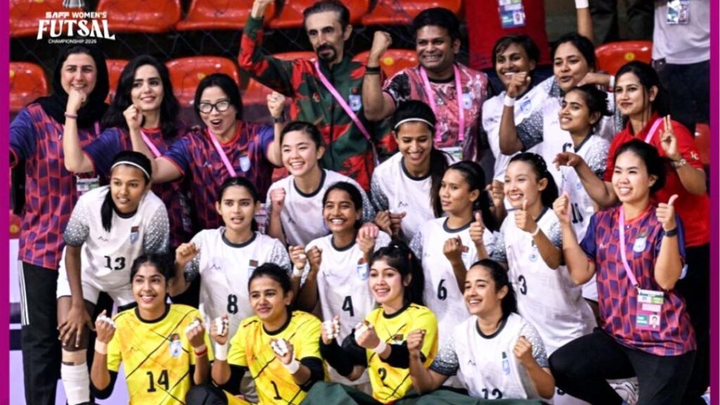 সাফ ফুটসালের প্রথম আসরেই ইতিহাসের পাতায় নাম লিখিয়েছে বাংলাদেশ। শুরু থেকে শেষ পর্যন্ত দাপটের সঙ্গে খেলেই চ্যাম্পিয়ন হয়েছে সাবিনা খাতুনের নেতৃত্বাধীন দল। টুর্নামেন্টের শেষ ম্যাচে মালদ্বীপকে ১৪–২ গোলের বিশাল ব্যবধানে হারিয়ে নিশ্চিত হয় বাংলাদেশের শ্রেষ্ঠত্ব।