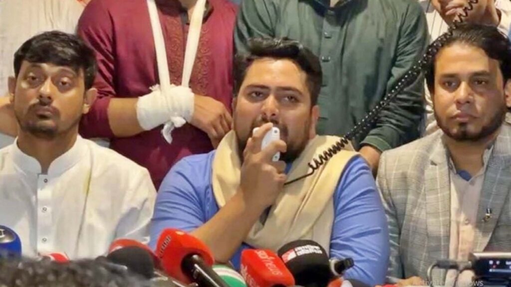নাহিদ ইসলাম বলেন, হাবীবুল্লাহ বাহার কলেজে আমন্ত্রিত অতিথি হিসেবে উপস্থিত হলে নাসীরুদ্দীন পাটওয়ারীকে বাধার মুখে পড়তে হয়। সে সময় তার ওপর ইট-পাটকেল নিক্ষেপ করা হয় বলে অভিযোগ করেন তিনি। একই সঙ্গে তিনি দাবি করেন, আগের দিন ঢাকা-১৮ আসনের প্রার্থী আরিফুল ইসলাম আদিবের ওপরও বিএনপি নেতাকর্মীরা হামলা চালিয়েছে।