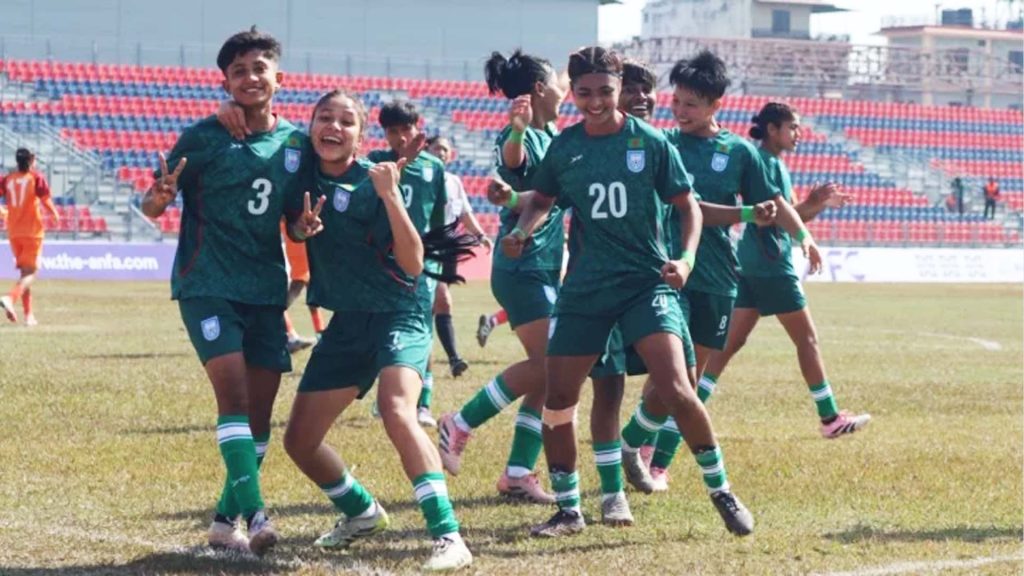 সাফ অনূর্ধ্ব–১৯ নারী চ্যাম্পিয়নশিপে দারুণ জয় দিয়ে টুর্নামেন্ট শুরু করেছে বর্তমান চ্যাম্পিয়ন বাংলাদেশ। উদ্বোধনী ম্যাচে ভুটানকে ১২-০ গোলে বিধ্বস্ত করার পর দ্বিতীয় ম্যাচেও শক্তিশালী ভারতের বিপক্ষে অসাধারণ পারফরম্যান্স দেখিয়েছে বাংলার মেয়েরা। সোমবার (২ ফেব্রুয়ারি) নেপালের পোখারায় অনুষ্ঠিত ম্যাচে ভারতকে ২-০ গোলে হারিয়ে টানা দ্বিতীয় জয় তুলে নেয় বাংলাদেশ।