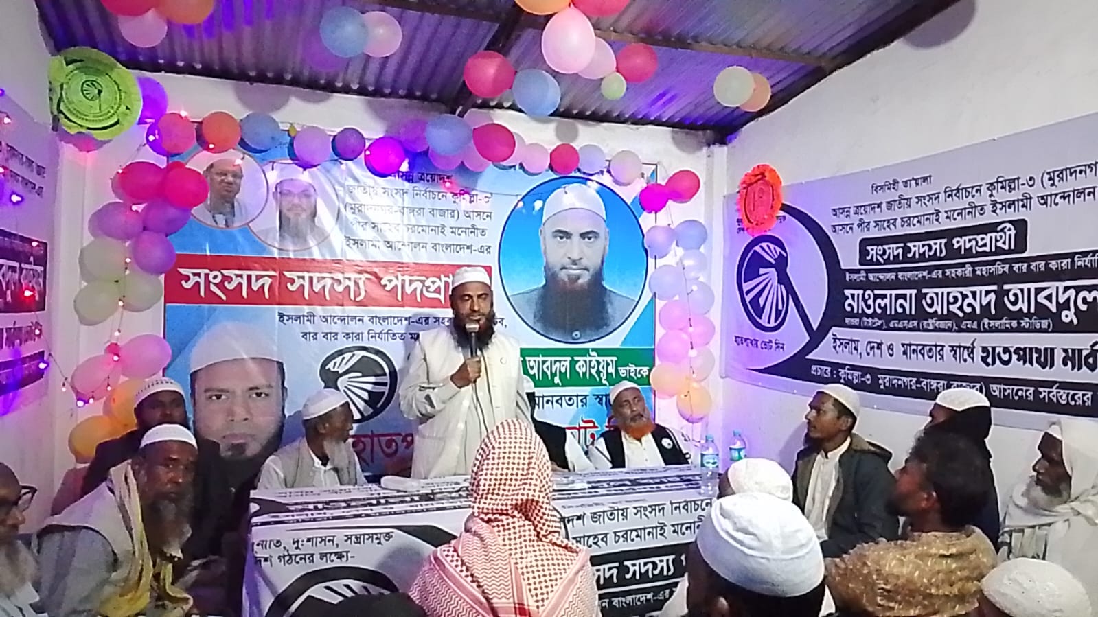 জনগণের মৌলিক অধিকার নিশ্চিত করতে এবং একটি মানবিক ও ইনসাফপূর্ণ সমাজ গড়তে আমরা অঙ্গীকারবদ্ধ। ইসলামী অনুশাসন ব্যতীত ইনসাফপূর্ণ সমাজ প্রতিষ্ঠা সম্ভব নয়। জনগণের প্রত্যাশা পূরণে শান্তি প্রতিষ্ঠার লক্ষ্যে ইসলামী আন্দোলন বাংলাদেশ-এর প্রতীক হাতপাখাকে ভোট দিয়ে বিজয়ী করতে হবে। আমরা সমৃদ্ধ মুরাদনগর গড়ে তুলতে চাই। জনগণের শান্তি ও উন্নয়ন করতে চাঁদাবাজমুক্ত উন্নত মুরাদনগর গড়তে আলেম প্রার্থীকে হাতপাখা প্রতীকে বিজয়ী করার আহ্বান জানান তিনি।
