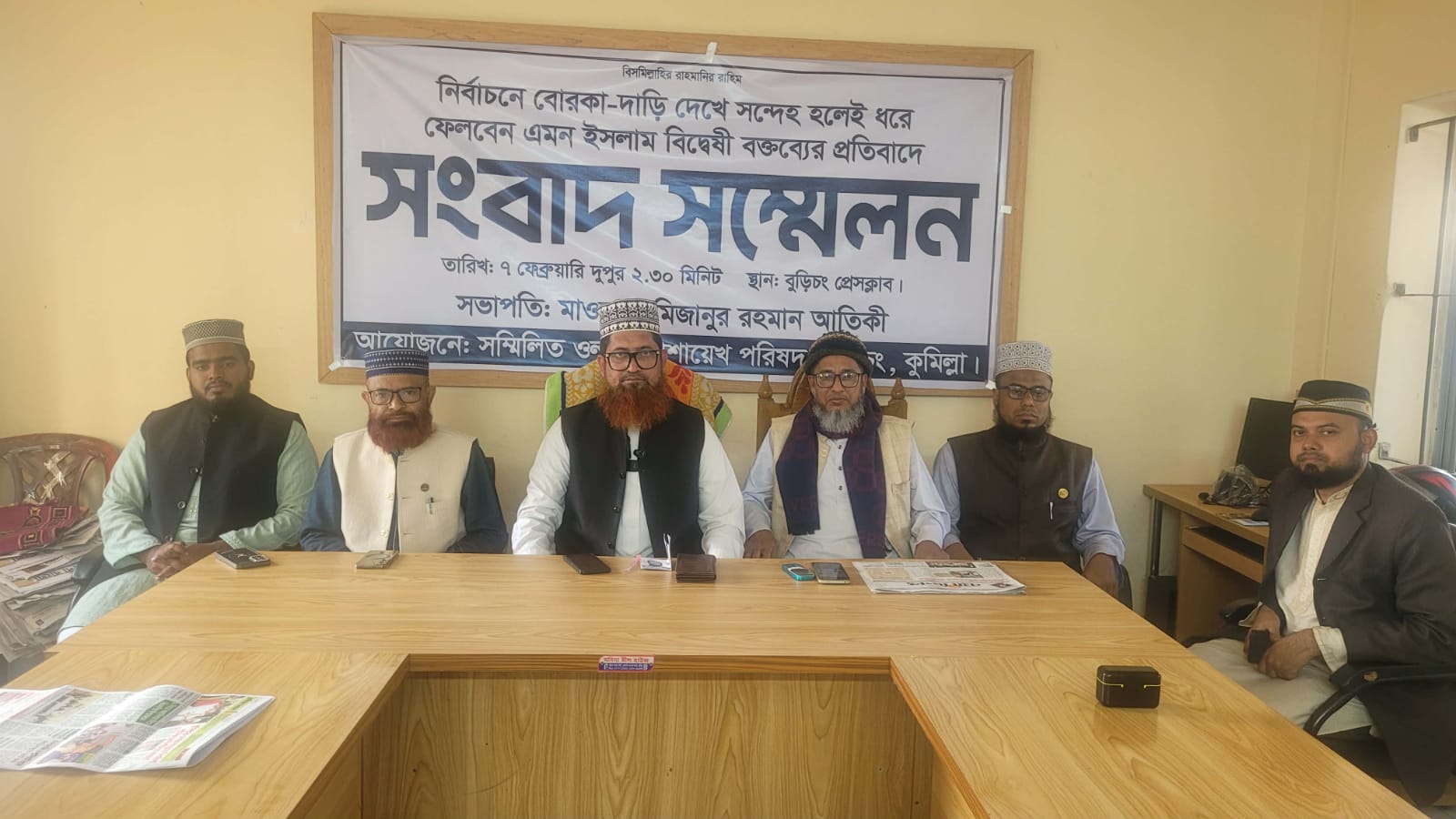 বুড়িচংয়ে বোরকা – দাড়ি নিয়ে কটুক্তির প্রতিবাদে সম্মিলিত ওলামা মাশায়েখ পরিষদের সংবাদ সম্মেলন
