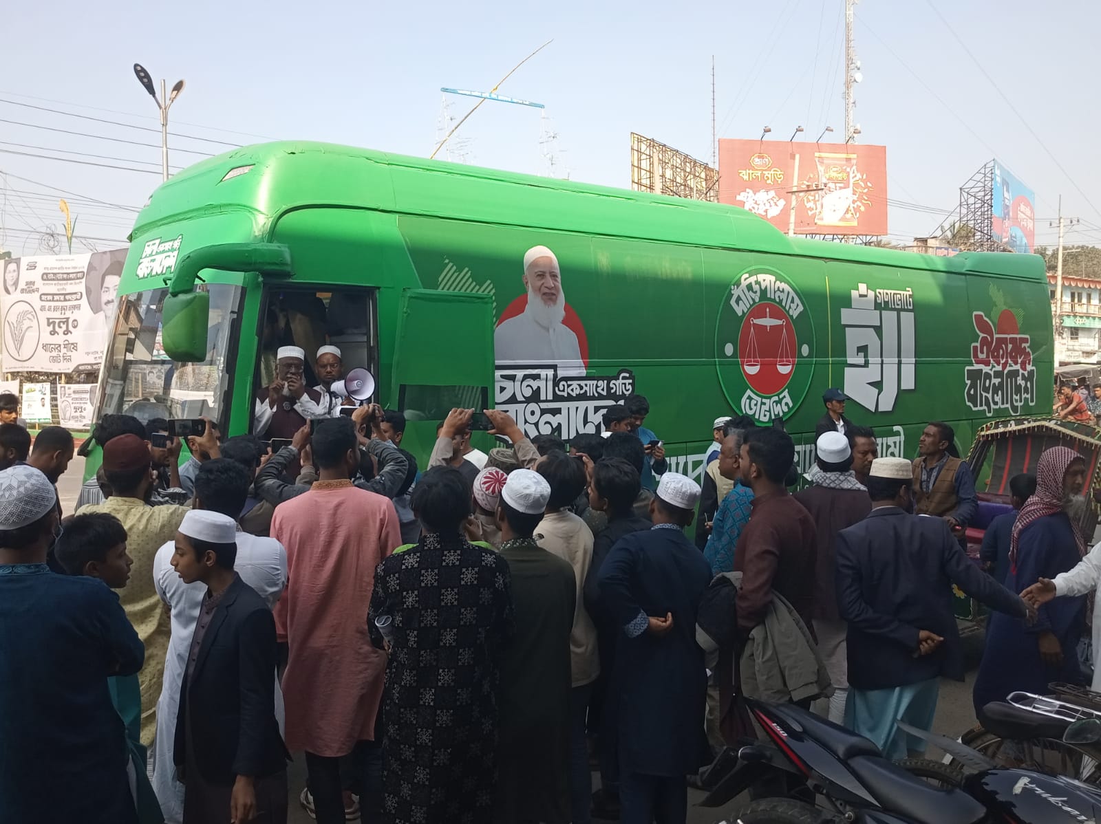 এসো একসাথে গড়ি বাংলাদেশ’ এবং ‘ঐক্যবদ্ধ বাংলাদেশ’ শ্লোগানে বাংলাদেশ জামায়াতে ইসলামী ভোটের গাড়ী মাল্টিমিডিয়া বাস নাটোরে।