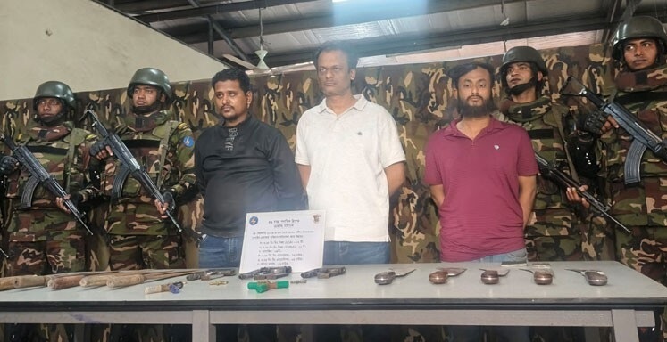 অস্ত্র উদ্ধারের বিষয়ে অধিনায়ক নাজিম আহমেদ বলেন, সুনির্দিষ্ট গোয়েন্দা তথ্যের ভিত্তিতে সাভারের চাপাইন এলাকায় অভিযান চালিয়ে তালিকাভুক্ত সন্ত্রাসী ও মাদক কারবারিকে গ্রেপ্তার করা হয়। গ্রেপ্তারকৃতরা হলেন—গালিব ইমতিয়াজ নাহিদ, রবিউল ইসলাম বাবু ওরফে মেশিন বাবু ও মাসুদ রানা আলভী ওরফে শুটার মাসুদ। তাদের আরেক সহযোগী স্বপন শেখ অভিযানের আগেই পালিয়ে যান।