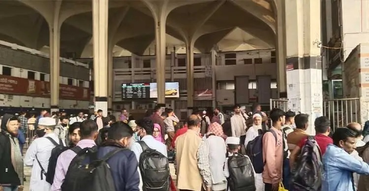 বুধবার সকাল থেকেই যাত্রাবাড়ী-সায়েদাবাদ বাস ও লঞ্চ টার্মিনালে ঘরমুখো মানুষের উপচেপড়া ভিড় লক্ষ্য করা গেছে। বাস কাউন্টারগুলোতে দীর্ঘ লাইন, টিকিটের জন্য হুড়োহুড়ি এবং অতিরিক্ত যাত্রীর চাপ সামাল দিতে হিমশিম খাচ্ছে পরিবহন সংশ্লিষ্টরা।