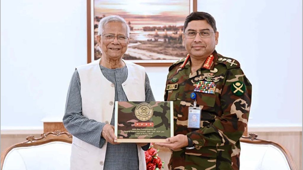 বাংলাদেশ সেনাবাহিনীর প্রধান জেনারেল ওয়াকার-উজ-জামান আজ অন্তর্বর্তীকালীন সরকারের প্রধান উপদেষ্টা প্রফেসর মুহাম্মদ ইউনূসের সঙ্গে বিদায়ী সাক্ষাৎ করেছেন।