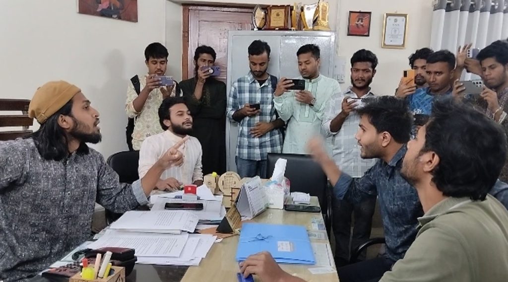 জানা গেছে, এর আগে ছাত্র অধিকার পরিষদের সভাপতি মেহেদী মারুফ তার সংগঠনের নেতাকর্মীদের নিয়ে জিএসের কার্যালয়ে যান। সেখানে ফেসবুকে দেওয়া মন্তব্যকে কেন্দ্র করে উভয়পক্ষের মধ্যে উত্তেজনা সৃষ্টি হয়। একপর্যায়ে কথা কাটাকাটি ও বাকবিতণ্ডায় জড়িয়ে পড়েন তারা। এ সময় ছাত্র অধিকার পরিষদের সাধারণ সম্পাদকসহ কয়েকজন নেতাকর্মীও উত্তেজিত হয়ে ওঠেন।