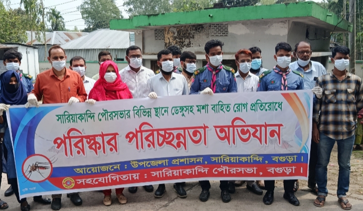 বগুড়ার সারিয়াকান্দিতে ডেঙ্গুসহ মশাবাহিত রোগ প্রতিরোধে পরিচ্ছন্নতা অভিযান ও জনসচেতনতামূলক কর্মসূচি পালিত হয়েছে।