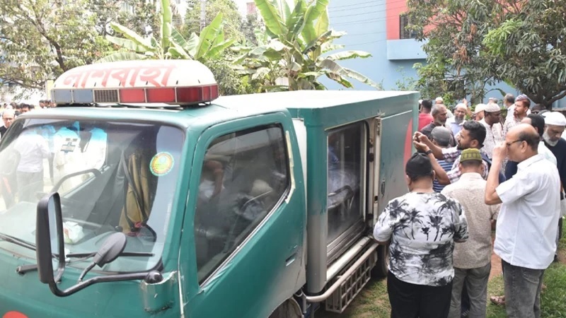 পরিবারের সদস্যরা লন্ডন থেকে দেশে ফেরার পথে থাকায় তার মরদেহ সম্মিলিত সামরিক হাসপাতালের হিমঘরে রাখা হয়। বৃহশপতিবার সকালে মরদেহ রাজশাহীতে নিয়ে যাওয়া হলে নগরের ঝাউতলা মিঠুর মোড়ের বাসায় নেওয়া হয়। সেখানে দ্বিতীয় জানাজা শেষে সন্ধ্যার পর তাকে দাফন করা হয়।