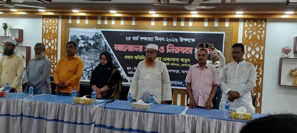 কেশবপুর উপজেলা প্রশাসনের আয়োজনে বুধবার সকালে ২৫মার্চ গণহত্যা দিবস ২০২৬ উপলক্ষে পরিষদের হল রুমে আলোচনা সভা ও নিরবতা পালন অনুষ্ঠিত হয়েছে।