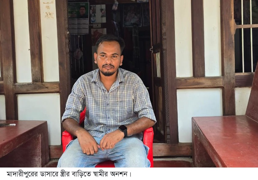 মাদারীপুরের ডাসার উপজেলার নবগ্রামে প্রেমিকার বাড়ীর সামনে বিয়ের স্বীকৃতি ও প্রেমিকাকে ফিরে পাওয়ার দাবীতে বিশ্বজিৎ বাড়ৈ(২৮) বছর বয়সী এক যুবক অনশন শুরু করছেন। ঘটনাটি এলাকায় ছড়িয়ে পড়লে ব্যাপক চাঞ্চল্যের সৃষ্টি হয়েছে। এ যেন লাইলির প্রেমে মজনু পাগল। আজ বৃহস্পতিবার (১ এপ্রিল) সকালে সরজমিনে গিয়ে জানাগেছে, উপজেলার নবগ্রাম ইউনিয়নের আলিসাকান্দি গ্রামে গত মঙ্গলবার থেকে প্রেমিকা অনুশীলা বাড়ৈর বাড়ীর সামনে অনশনে বসেন বিশ্বজিৎ বাড়ৈ। তিনি ডাসার উপজেলার নবগ্রামের বিপ্রদাশ পাত্রের ছেলে। বিশ্বজিৎ পাত্রর দাবি,ডাসার উপজেলার নবগ্রাম ইউনিয়নের মনতোষ বাড়ৈর মেয়ে অনুশীলা বাড়ৈর(২৩) এর সাথে ১০ বছর ধরে প্রেমের সম্পর্ক রয়েছে এবং তারা চার বছর আগে কোর্ট ম্যারিজ করে বিবাহ বন্ধনে আবদ্ধ হয়।তিনি সেই সম্পর্কের বিয়ের স্বকৃীতি দাবি করেন। বিশ্বজিৎ পাত্র জানান,আমার ১০ বছরের সম্পর্ক অনুশীলা বাড়ৈর সাথে। তার নার্সিং পড়ালেখার জন্য তার পিছনে প্রায় ১৫-২০ লক্ষ টাকা খরচ করি।ঢাকা এক সাথে দীর্ঘ সময় বাসা ভাড়া করে থেকেছি।তার পরিবার ও গ্রামের কমবেশি সবাই জানে।সম্প্রতি লেখাপড়া শেষ করে আমার স্ত্রী একটি বেসরকারি হাসপাতালে নাসিংয়ে চাকুরি নিয়েছে।এরপর থেকে আমার সাথে পরিবারের কথায় দুরত্ব বজায় রাখছে। ১২দিন হয়, আমার সাথে সম্পূর্ণ যোগাযোগ বিচ্ছিন্ন করে।তাই আমি নিরুপায় হয়ে তার বাড়ীতে আমাদের বিয়ের সম্পর্কের স্বকৃীতি পেতে অনশনে বসেছি।সুষ্ঠু সমাধান না হওয়া পর্যন্ত এখানেই অনশন চালিয়ে যাব। অনুশীলা বাড়ৈ বলেন,তার সাথে আমার সম্পর্ক ছিল।জোড় করে কোর্ট ম্যারিজে সই করাইছে।আমি এক সপ্তাহ আগে তাকে ডিভোর্স দিয়ে দিয়েছি।তার সাথে আমি সংসার করবো না। স্থানীয় মেম্বার ও কয়েকজন গ্রামবাসী জানান,দীর্ঘদিনের সম্পর্ক ছেলে ও মেয়ের।সেই সম্পর্কের জেরে তারা দুজনের সম্মতিতে গোপনে বিয়ে করছে।এখন এলাকার সবাই জানে।তাদের সম্পর্কের বিয়ের স্বকৃীতির দাবীতে ছেলেটি দুইদিন ধরে অনশনে বসেছে।উভয় পরিবারের সাথে আমারা কথা বোলছি। সমঝোতার মাধ্যমে বিষয়টি মিমাংসা করার চেষ্টা করছি। এব্যাপারে ডাসার থানার ওসি মো.তরিকুল ইসলাম বলেন,তাদের ব্যাপারে খোঁজ নেওয়া হবে।বিষয়টি নিয়ে থানায় এখনও কেউ অভিযোগ নিয়ে আসেনি।অভিযোগ পেলে তদন্ত করে আইনানুগ ব্যবস্থা গ্রহণ করা হবে।