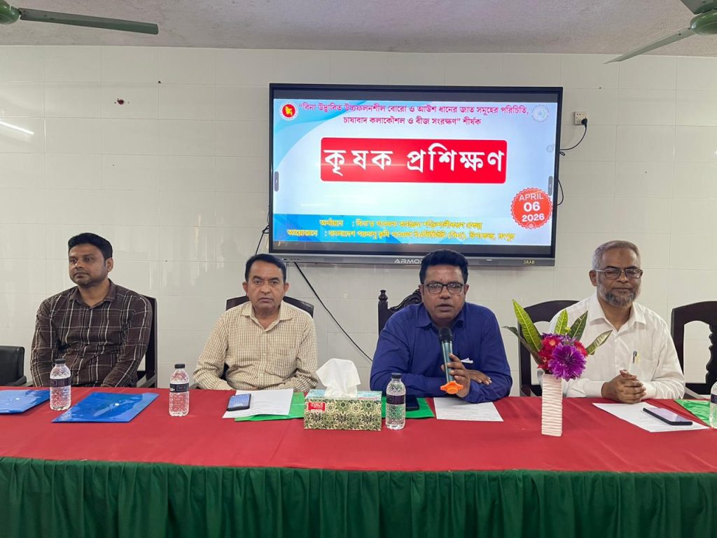 বাংলাদেশ পরমাণু কৃষি গবেষণা ইনস্টিটিউট (বিনা) উদ্ভাবিত বোরো ও আউশ ধানের জাত পরিচিতি ও চাষাবাদ কলাকৌশল ও বীজ সংরক্ষণ শীর্ষক কৃষক প্রশিক্ষণ অনুষ্ঠিত হয়েছে।