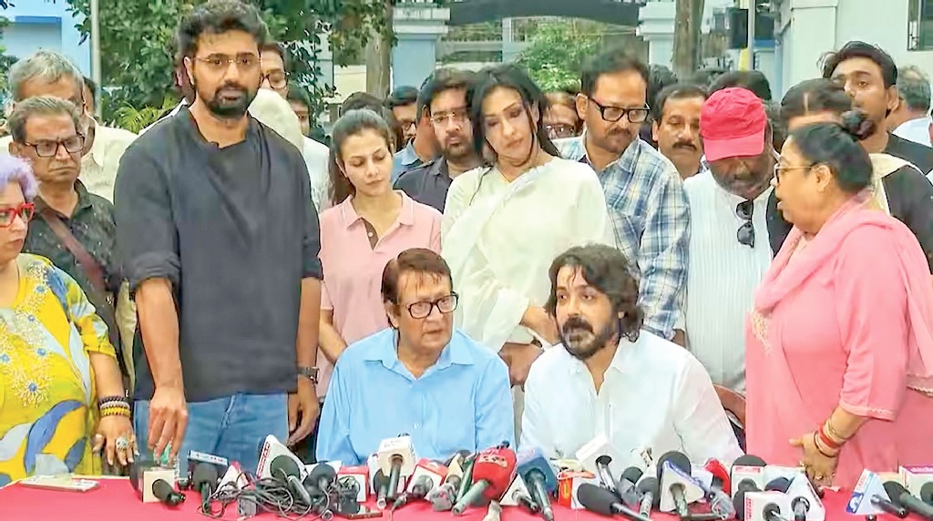 কর্মবিরতির দিন শেষে সাংবাদিকদের মুখোমুখি হয়ে এই সিদ্ধান্ত জানান টালিউডের শীর্ষ তারকারা। এ সময় উপস্থিত ছিলেন রঞ্জিত মল্লিক, প্রসেনজিৎ চট্টোপাধ্যায়, দেব, কোয়েল মল্লিক, ঋতুপর্ণা সেনগুপ্ত, যীশু সেনগুপ্ত, হরনাথ চক্রবর্তী, পিয়া সেনগুপ্ত, স্বরূপ বিশ্বাস ও কৌশিক গাঙ্গুলী।