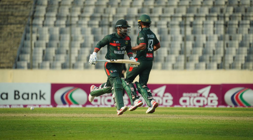 ২৪৮ রানের লক্ষ্য তাড়া করতে নেমে শুরুতেই ধাক্কা খায় বাংলাদেশ। মাত্র ২১ রানে ২ উইকেট হারায় দলটি। তানজিদ হাসান তামিম ও নাজমুল হোসেন শান্ত দ্রুত আউট হলে চাপে পড়ে যায় স্বাগতিকরা।