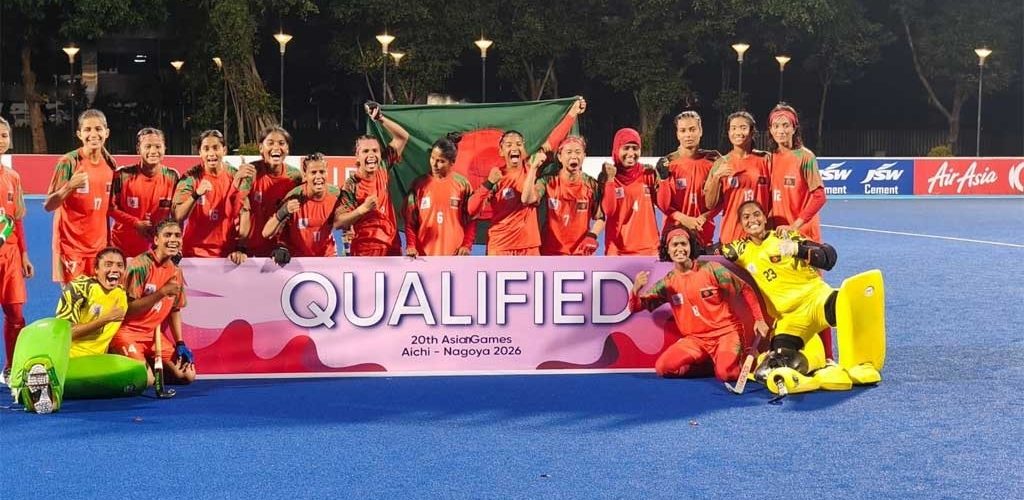 এশিয়ান গেমসের হকি বাছাইয়ে ইতিহাস গড়ে চলেছে বাংলাদেশ নারী দল। দুর্দান্ত পারফরম্যান্সের ধারাবাহিকতায় আইরিন রিয়ার হ্যাটট্রিকে সিঙ্গাপুরকে ৩-১ গোলে হারিয়ে ফাইনালে উঠেছে বাংলাদেশ।