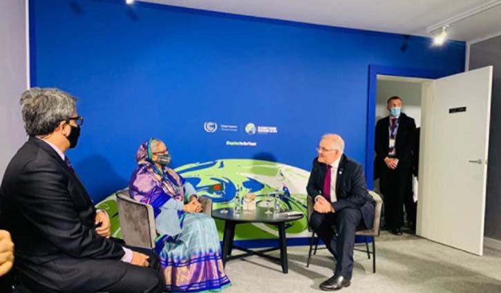 মঙ্গলবার কপ-২৬ এর সাইডলাইনে প্রধানমন্ত্রী শেখ হাসিনার সাথে এক দ্বিপক্ষীয় বৈঠকে অস্ট্রেলীয় প্রধানমন্ত্রী স্কট মরিসন এ বার্তা দেন। প্রধানমন্ত্রীর প্রেস সচিব ইহসানুল করিম বলেন, ‘অস্ট্রেলীয় প্রধানমন্ত্রীর আমন্ত্রণে এ দ্বিপক্ষীয় বৈঠক অনুষ্ঠিত হয়।’