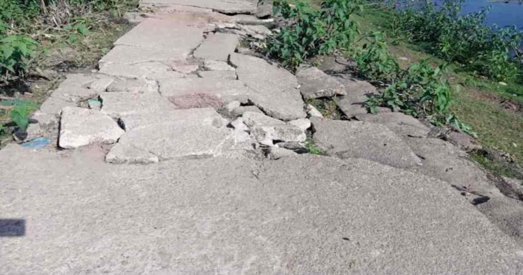 সরেজমিনে দেখা গেছে , বৃষ্টি ও বন্যার পানিতে রাস্তার দু’পাশের মাটি সরে রাস্তার অধিকাংশ স্থানই বড় বড় ভাঙন দেখা গেছে। ফলে ব্যাটারিচালিত অটোরিকশা, ভ্যানগাড়ি, মোটরসাইকেলসহ বিভিন্ন যানবাহন আরোহীদের দুর্ভোগ পোহাতে হচ্ছে। শুধু গাড়ি চালক নয়, পথচারীদের জন্যও দুর্বোধ্য হয়ে উঠেছে এ রাস্তাটি।