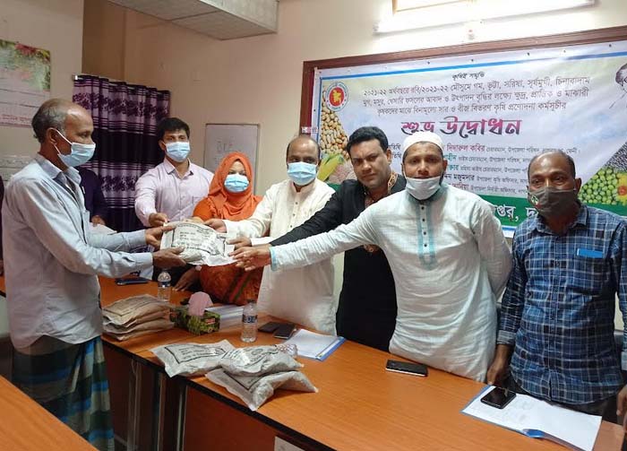 উপজেলাব্যাপী ফসলের আবাদ ও উৎপাদন বৃদ্ধির লক্ষ্যে ক্ষুদ্র, প্রান্তিক ও মাঝারি ৮’শ কৃষকের মাঝে বিণামূল্যে গম, ভূট্টা, সরিষা, সূর্যমুখী, চিনাবাদাম, মুগ, মসুর ও খেসারীর বীজ এবং সার কিটনাশক বিণামূল্যে প্রদান করা হয়।