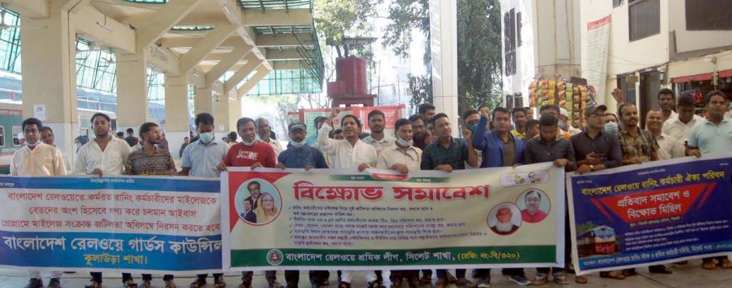 সিলেটে রেলওয়ে শ্রমিকলীগের বিক্ষোভ সমাবেশ