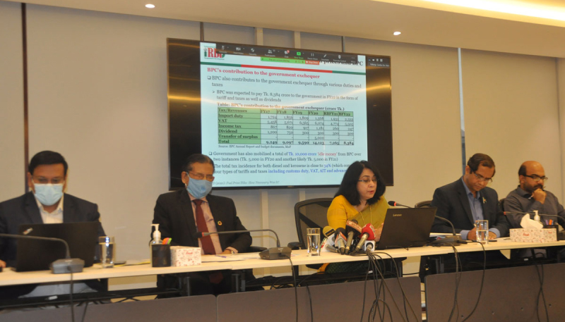 সরকার সম্প্রতি জ্বালানি তেল ডিজেল ও কেরোসিনের যে দাম বাড়িয়েছে তাকে অযৌক্তিক উল্লেখ করে, বেসরকারি গবেষণা প্রতিষ্ঠান সেন্টার ফর পলিসি ডায়ালগ (সিপিডি) জ্বালানি তেল আগের দামে ফিরিয়ে নেওয়ার সুপারিশ করেছে। গবেষণা প্রতিষ্ঠানটি বলছে, কেরোসিন ও ডিজেলের দাম বাড়ানোর যে সিদ্ধান্ত নেওয়া হয়েছে তা অর্থনৈতিক দৃষ্টিভঙ্গি থেকে যুক্তিসংগত নয়। সরকারের নীতিমালার সঙ্গে সংগতিপূর্ণ নয়, নৈতিকভাবে গ্রহণযোগ্য নয় এবং রাজনৈতিকভাবে এটা কোনো আলোকিত সিদ্ধান্ত না। বুধবার (১০ নভেম্বর) ‘জ্বালানি তেলের মূল্যবৃদ্ধি কতটুকু প্রয়োজন ছিল?’ শীর্ষক একটি ব্রিফিংয়ে সিপিডির পক্ষ থেকে এ সুপারিশ এবং অভিমত তুলে ধরা হয়। মিডিয়া ব্রিফিংয়ে সিপিডির নির্বাহী পরিচালক ড. ফাহমিদা খাতুনের সঙ্গে উপস্থিত ছিলেন প্রতিষ্ঠানটির সম্মানীয় ফেলো মুস্তাফিজুর রহমান এবং গবেষণা পরিচালক খন্দকার গোলাম মোয়াজ্জেম। মোস্তাফিজুর রহমান বলেন, যে সিদ্ধান্ত নেওয়া হয়েছে তা অর্থনৈতিক দৃষ্টিভঙ্গি থেকে যুক্তিসংগত নয়। সরকারের নীতিমালার সঙ্গে সংগতিপূর্ণ নয়। নৈতিকভাবে গ্রহণযোগ্য নয় এবং রাজনৈতিকভাবে এটা কোনো আলোকিত সিদ্ধান্ত নয় বলে আমাদের কাছে মনে হয়েছে। মিডিয়া ব্রিফিংয়ে সিপিডির মূল প্রবন্ধ তুলে ধরেন ফাহমিদা খাতুন। মূল প্রবন্ধ তুলে ধরার সময় তিনি বলেন, জ্বালানি তেলের দাম বাড়ানোর ফলে সামগ্রিকভাবে অর্থনীতি ও মানুষের জীবনযাত্রার ওপর চাপ সৃষ্টি হবে। এই মূল্যবৃদ্ধির ফলে হয়তো বিত্তবানদের ওপর খুব একটা প্রভাব পড়বে না। কিন্তু যারা দরিদ্র এবং যারা নতুন করে দরিদ্র হয়েছে, যারা কোভিড আক্রান্ত অর্থনীতিতে নতুন করে রিকোভারির চেষ্টার মধ্যে রয়েছে, তাদের ওপর যে প্রভাব পড়বে, আমরা যদি ন্যায্যতার কথা বলি সেই ন্যায্যতার দিক থেকেও এটা (জ্বালানি তেলের দাম বৃদ্ধি) একটা অন্যায্য পদক্ষেপ নেওয়া হয়েছে, বলেন সিপিডির নির্বাহী পরিচালক। তিনি বলেন, এই দাম বাড়ানো হচ্ছে বিপিসির লোকসানের কথা বলে। বিপিসির লোকসানের কারণ কি? আমরা জানি এখানে সুশাসনের অভাব রয়েছে। বিপিসির তেল সংগ্রহ, বিক্রি, মার্কেটিংয়ে সিস্টেমের ব্যবস্থাপনা ও সুশাসনের অনেক অভিযোগ রয়েছে। তারা বিভিন্ন মার্কেটিং কোম্পানিকে দিয়ে তেল মার্কেটিং করে। সেখানেও আমরা দেখি দুর্নীতির খবর এসেছে। যে হারে দাম বাড়ানো হয় বাজারে তার থেকে বেশি হারে প্রভাব পড়ে এমন অভিযোগ করে ফাহমিদা বলেন, যখন কোনো একটা জিনিসের মূল্য ৫, ১০ বা ২০ শতাংশ বাড়ানো হলো, তখন আমরা বাজারে গিয়ে দেখবো, মূল্য অনেক বেশি। এই যে এখন তেলের দাম ২৮ শতাংশ বাড়ানো হয়েছে, সেখানে বাসের ভাড়া প্রকৃতপক্ষে ৫০ শতাংশ বেশি নেওয়া হয়েছে। তিনি বলেন, মূল্য নির্ধারণ করার মেকানিজমে আমরা বৈজ্ঞান