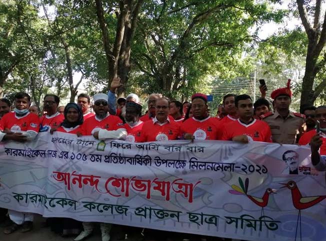 বন্ধু অনেক দিন থেকে দেখি না তোমায় বলেই আলিঙ্গন। পরে চলে বসে ও দাঁড়িয়ে স্মৃতিচারণ। ১০৫ বছর উদযাপন উপলক্ষে কারমাইকেল কলেজ প্রাক্তন ছাত্র সমিতির উদ্যেগে শুক্রবারের (১২ নভেম্বর) মিলন মেলায় এক বন্ধু আরেক বন্ধুকে কাছে পেয়ে এভাবেই স্মৃতিচারণ করেন। সকাল ৯টা থেকে ক্যাম্পাসে বর্ণাঢ্য শোভাযাত্রা, আলোচনা সভা, স্মৃতিচারণ ও সাংস্কৃতিক অনুষ্ঠান আয়োজন করা হয়। পরে অনুষ্ঠানে অতিরিক্ত সচিব ও প্রাক্তন ছাত্র সমিতির সভাপতি জাহাঙ্গীর আলমের সভাপতিত্বে প্রধান অতিথি ছিলেন সমাজকল্যাণ মন্ত্রী নুরুজ্জামান আহমেদ এমপি । বিশেষ অতিথি ছিলেন- বাংলাদেশ সুপ্রিম কোর্টের (হাইকোর্ট বিভাগ) বিচারপতি এম এনায়েতুর রহিম, বিরোধী দলীয় চিফ হুইপ মসিউর রহমান রাঙ্গা এমপি , রংপুর সিটি করপোরেশনের মেয়র মোস্তাফিজার রহমান মোস্তফা, কারমাইকেল কলেজ অধ্যক্ষ প্রফেসর ড. মো. আমজাদ হোসেন বক্তব্য রাখেন সমিতির সাধারণ সম্পদক রশিদুস সুলতান মানিক, কেন্দ্রীয় কোষাধ্যক্ষ এডভোকেট জিয়াউর রহমান, আবুল কাশেম প্রমূখ । অনুষ্ঠানের দ্বিতীয় পর্বে ছিল প্রাক্তন ছাত্রছাত্রীর সৃতি চারণ ও মনোজ্ঞ সাংস্কৃতিক অনুষ্ঠান । পরে প্রাক্তন ছাত্রছাত্রীদের জন্য একটি এমবুলেন্স উপহার হিসেবে প্রদান করা হয় ।