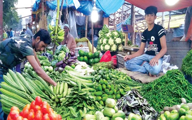 বাজারে শীতের সবজি সরবরাহ বাড়লেও কমছে না দাম। ৪৫ থেকে ৫০ টাকার নিচে কোনো সবজিই পাওয়া যাচ্ছে না বাজারে। এতে বিপাকে পড়েছেন নিম্ন ও মধ্যবিত্তরা। সংসার চালাতে হিমসিম খাচ্ছেন তারা। শনিবার (১৩ নভেম্বর) সকালে ময়মনসিংহের শম্ভুগঞ্জ বাজারে গিয়ে কথা সবজি বিক্রেতা ওয়াহেদ আলীর সঙ্গে। তিনি বলেন, প্রচুর পরিমাণ শীতের সবজি বাজারে আসছে। তবে দাম এখনো কমেনি। আর কয়েক সপ্তাহ পর কম পারে। তিনি বলেন, প্রতি কেজি সিম ১২০ টাকা, করলা ৮০ টাকা, পটল ৪০ টাকা, বেগুন ৫০ টাকা, শসা ৩৫ টাকা, টমেটো ১০০ টাকা, পেঁপে ২০ টাকা, চিচিঙ্গা ৫০ টাকা, ঝিঙে ৫০ টাকা, বরবটি ৭০ টাকা, ঢেঁড়স ৫০ টাকা, নতুন আলু ১২০ টাকা দরে বিক্রি হচ্ছে। এছাড়া, প্রতি পিস ফুলকপি ৫০ টাকা, বাঁধাকপি ৫০ টাকা পিস, লেবু ১৫ টাকা হালি, কাঁচকলা ২৫ টাকা হালি, ছোট লাউ ৪৫ থেকে ৫০ টাকা, নতুন আলু ১২০ টাকা কেজি বিক্রি হচ্ছে। একই বাজারের খোকন মিয়া বলেন, দেশি আলু বিক্রি করছি ২৫ টাকায়। দেশি পেঁয়াজ ৫৫ টাকা, ভারতীয় পেঁয়াজ ৫০ টাকা, দেশি রসুন ৭০ টাকা, ভারতীয় রসুন ১২০ টাকা, আদা ১০০ থেকে ১১০ টাকা, বড় আলু ২০ টাকা কেজি বিক্রি হচ্ছে। শম্ভুগঞ্জ বাজারের মাংস বিক্রেতা সুলতান মিয়া বলেন, মাংসের দাম বাড়ায় বিক্রি কমে গেছে। খাসির মাংস ৭৮০ থেকে ৮০০ টাকা, গরুর মাংস ৫৬০ থেকে ৫৮০ টাকা বিক্রি হচ্ছে। এদিকে, ব্রয়লার মুরগি ১৪০ টাকা, পাকিস্তানি ১৮০ টাকা, লেয়ার ২০০ টাকা, সাদা কক ১৮০ টাকা কেজি বিক্রি দরে হচ্ছে। এদিকে, হাঁসের ডিমের হালি ৫০ টাকা, দেশি মুরগি ৬০ টাকা, ফার্মের মুরগির ডিম ৩৫ টাকা হালি দরে বিক্রি হচ্ছে। মাছ বিক্রেতা পারভেজ মিয়া বলেন, পাঙাশ মাছ ১২০ টাকা, রুই ২৪০ টাকা, বড় সিলভার ২২০ টাকা, গ্রাস কার্প ১৬০ টাকা, শিং ৩৫০ টাকা, কাচকি ৩০০ টাকা, কই ১৮০ টাকা, রাজপুঁটি ২৫০ টাকা, চিংড়ি ৭০০ টাকা, ছোট মৃগেল ২০০ টাকা, কারপু ১৮০ টাকা, বাউশ মাছ ২২০ টাকা কেজি বিক্রি হচ্ছে। ওই বাজারের রাজলক্ষ্মী স্টোরের বিক্রেতা বোলানাথ দাস বলেন, খোলা সয়াবিন গত সপ্তাহে ১৬০ টাকা, কোয়ালিটি ১৫৫ টাকা, পামওয়েল ১৫০ টাকা কেজি, চিনি ৮০ টাকা, খোলা আটা ৩৫ টাকা, প্যাকেট আটা ৪০ টাকা কেজি বিক্রি হচ্ছে। তিনি আরও বলেন, দেশি মসুর ডাল ১২০ টাকা, ইন্ডিয়ান মসুর ডাল ৯০ টাকা, বুটের ডাল ৯০ টাকা, অ্যাংকর ৪৫ টাকা, খেসারি ৭০ টাকা, মুগডাল ১৪০ টাকা, মাসকলাই ১০০ টাকা, ভাঙা মাসকলাই ১৩০ টাকা কেজি বিক্রি করছি।