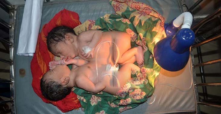 বরিশালের গৌরনদী উপজেলা সদরের একটি ক্লিনিকে হালিমা বেগম নামে এক গৃহবধূ জোড়া লাগানো যমজ কন্যা সন্তানের জন্ম দিয়েছেন। বুধবার (২ জুন) বেলা সাড়ে ১১টার দিকে অস্ত্রোপচারের মাধ্যমে যমজ শিশুর জন্ম হয়। তবে জন্মের পর থেকেই নবজাতক দুটির শারীরিক জটিলতা থাকায় চিকিৎসকরা উন্নত চিকিৎসার পরামর্শ দেন। যদিও দরিদ্র ভ্যানচালক বাবার পক্ষে সেটা সম্ভব হয়নি।