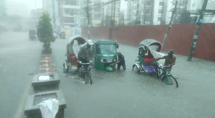 ভোর থেকে মুষলধারে বর্ষণে জলাবদ্ধতার চরম বেকায়দায় পড়েন বন্দরনগরী চট্টগ্রামের সাধারণ মানুষ। সেই সঙ্গে পানির মধ্যে গাড়ি নষ্ট হয়ে যাওয়ায় চরম দুর্ভোগে পড়তে হয়েছে চালকদের। জমে যাওয়া পানি মাড়িয়ে হেডলাইট জ্বালিয়ে চলাচল করছে গণপরিবহন।