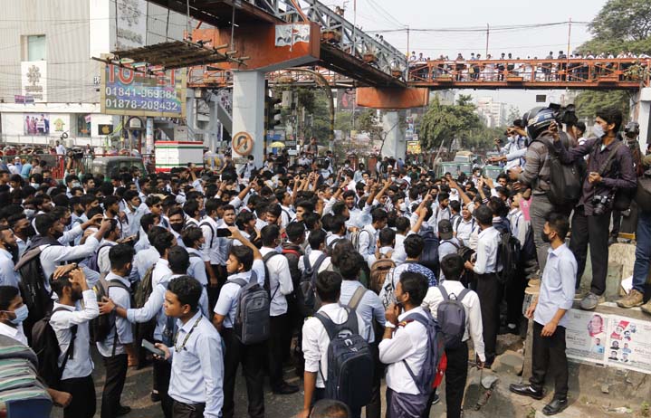 দুপুর দেড়টার দিকে ২৪ ঘণ্টার আলটিমেটাম দিয়ে শিক্ষার্থীরা অবরোধ কর্মসূচি শেষ করেন। এর কিছু পর আইডিয়াল কলেজ ও বীরশ্রেষ্ঠ মুন্সী আবদুর রউফ কলেজের কিছু শিক্ষার্থী মিছিল নিয়ে নীলক্ষেতের দিকে আসতে থাকেন। তখন ঢাকা কলেজের ওই ছাত্র আন্দোলনকারী শিক্ষার্থীদের রাস্তায় থাকা অ্যাম্বুলেন্স ছেড়ে দিতে বলেন। এনিয়ে বাগবিতন্ডা হয়। পরে ঢাকা কলেজের ওই শিক্ষার্থী মোটরসাইকেল নিয়ে কলেজের সামনের তেল পাম্পে গেলে আইডিয়াল কলেজের শিক্ষার্থীরা ধাওয়া দিয়ে মোটরসাইকেল ভাঙচুর করেন এবং ওই ছাত্রকে মারধর করেন। পরে ওই ছাত্র দৌড়ে ঢাকা কলেজ ক্যাম্পাসে প্রবেশ করে বিষয়টি জানালে উভয়পক্ষের মধ্যে ধাওয়া-পাল্টা ধাওয়ার ঘটনা ঘটে। আন্দোলনকারীদের হাতে মারধরের শিকার ঢাকা কলেজের ছাত্র হাসু বলেন, আমি শুধু বলেছি অ্যাম্বুলেন্স ছেড়ে দিতে। ওরা সবাই জড়ো হয়ে আমার ওপর হামলা করে। আমার বাইক ভেঙে ফেলে। টি-শার্ট ছিঁড়ে ফেলে। এ বিষয়ে নিউমার্কেট জোনের সহকারী পুলিশ কমিশনার (এসি) শাহেন শাহ্ বলেন, অন্যদিনের মতো শিক্ষার্থীদের শান্তিপূর্ণ কর্মসূচি ছিল। তারা আন্দোলন শেষ করে নীলক্ষেত মোড়ের দিকে বিক্ষোভ মিছিল নিয়ে যাচ্ছিল। পরে ঢাকা কলেজের সামনের পাম্পে আইডিয়াল কলেজের শিক্ষার্থীদের সাথে কী হয়েছে সেটা আমরা সরাসরি দেখিনি।