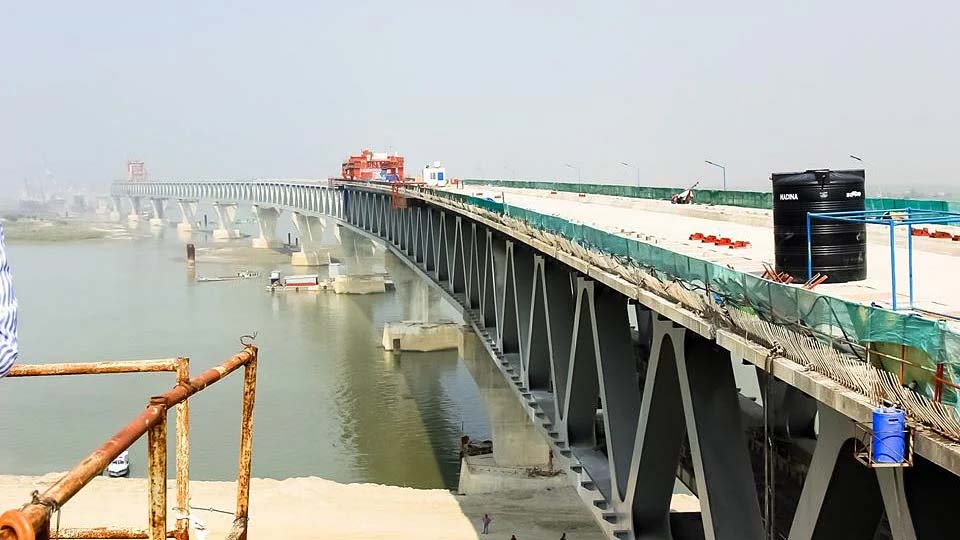নানা প্রতিকূলতা কাটিয়ে এখন শেষের পথে পদ্মা সেতুর নির্মাণ কাজ। ২০২২ সালের জুনে সেতুতে যান চলাচলের লক্ষ্যে করোনা পরিস্থিতির মধ্যেও এগিয়ে চলছে কাজ। নভেম্বর মাস পর্যন্ত পদ্মা সেতু প্রকল্পের সার্বিক কাজ এগিয়েছে ৮৯ শতাংশ। আর মূল সেতুর কাজের অগ্রগতি ৯৫ দশমিক ২৫ শতাংশ। অর্থাৎ মূল সেতুর কাজের আর বাকি মাত্র ৪ দশমিক ৭৫ শতাংশ। বৃহস্পতিবার (২রা ডিসেম্বর) সকালে পদ্মা সেতুর নির্বাহী প্রকৌশলী (মূল সেতু) দেওয়ান মো. আবদুল কাদের এসব তথ্য নিশ্চিত করেছেন। সেতুর প্রকৌশল বিভাগ সূত্রে জানা যায়, পদ্মা সেতু প্রকল্পের সর্বমোট বাজেট ৩০ হাজার ১৯৩ কোটি ৩৯ লাখ টাকা। যার মধ্যে গত নভেম্বর মাস পর্যন্ত ব্যয় হয়েছে ২৬ হাজার ৪৭৬ কোটি ৩৩ লাখ টাকা বা মোট বাজেটের ৮৭ দশমিক ৬৯ শতাংশ। মূল সেতুর কাজের চুক্তিমূল্য প্রায় ১২ হাজার ৪৯৪ কোটি টাকা। যার মধ্যে চলতি বছরের নভেম্বর মাস পর্যন্ত ব্যয় হয়েছে প্রায় ১১ হাজার ৫১২ কোটি ৭৯ লাখ টাকা। এদিকে সেতু প্রকল্পের আওতায় নদী শাসনের কাজের অগ্রগতি হয়েছে সাড়ে ৮৬ শতাংশ। নদী শাসন কাজের চুক্তিমূল্য আট হাজার ৯৭২ কোটি ৩৮ লাখ টাকার মধ্যে ব্যয় হয়েছে সাত হাজার ৩১ কোটি ৭১ লাখ টাকা। প্রকৌশল বিভাগ আরও জানায়, মূল সেতুর মধ্যে দুই হাজার ৯১৭টি রোডওয়ে স্লাব, ২ হাজার ৯৫৯টি রেলওয়ে স্লাব ও পাঁচ হাজার ৮৩৪টি শেয়ার পকেট বসানো হয়েছে। ১২ হাজার ৩৯০টি প্যারপেট ওয়ালের মধ্যে ১২ হাজার ২৫৪টি স্থাপন সম্পন্ন হয়েছে। আর মাওয়া ও জাজিরার ভায়াডাক্টে ৪৩৮টি সুপারটি গার্ডারের মধ্যে ৪৩৮টি ওবং ৮৪টি রেলওয়ে আই গার্ডারের মধ্যে ৮৪টিই স্থাপন করা হয়েছে। মূল সেতুর মোট ৪১টি ট্রাস রয়েছে, যার সবগুলো ইতোমধ্যে স্থাপন করা হয়েছে। যার দৈর্ঘ্য ছয় হাজার ১৫০ মিটার বা ৬ দশমিক ১৫ কিলোমিটার। এদিকে সেতুর সংযোগ সড়ক ও সার্ভিস এরিয়ার কাজ ইতোমধ্যেই শতভাগ শেষ হয়েছে। এতে ব্যয় হয়েছে এক হাজার ৪৯৯ কোটি ৫১ লাখ টাকা। এ ছাড়া ভূমি অধিগ্রহণ, পুনর্বাসন ও পরিবেশ খাতে বরাদ্দ চার হাজার ৩৪২ কোটি ২৬ লাখ টাকা। অন্যান্য (পরামর্শক, সেনা নিরাপত্তা, ভ্যাট ও আয়কর, যানবাহন, বেতন ও ভাতাদি এবং অন্যান্য) খাতে বরাদ্দ দুই হাজার ৮৮৫ কোটি ৩৬ লাখ টাকা। সেতুর অবশিষ্ট কাজের মধ্যে ওয়াটার প্রুফিং মেমব্রিনের কাজ ১৩ ভাগ, কার্পেটিং-২ দশমিক ০৫ ভাগ, মুভমেন্ট জয়েন্ট ৫৯ ভাগ, ল্যাম্পপোস্ট ৯ দশমিক ১৯ ভাগ কাজ এগিয়েছে। এ ছাড়া গ্যাস পাইপ লাইন ৪৯ দশমিক ৩৫ ভাগ এবং ৪০০ কেভিএ বিদ্যুৎ লাইনের কাজ ৬২ ভাগ এগিয়েছে।