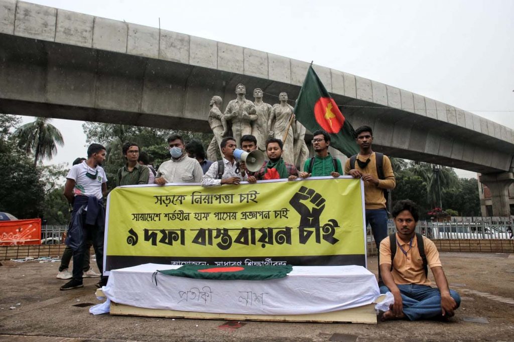 রবিবার সারাদেশে হাফ পাসের প্রজ্ঞাপনসহ মোট ৯ দফা দাবিতে শাহবাগ মোড়ে এ কর্মসূচি পালন করেন তারা।