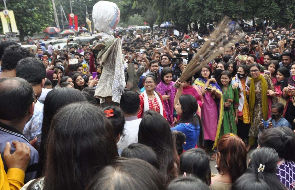 তিনি আরও বলেন, এই আলালরা (মোয়াজ্জেম হোসেন আলাল) মুক্তিযুদ্ধের সময় কোথায় ছিল! এই আলাল প্রধানমন্ত্রীকে নিয়ে যেভাবে কুরুচিপূর্ণ কথা বলেছেন সেটা রাষ্ট্রদ্রোহিতার শামিল। অবিলম্বে তাকে গ্রেপ্তার করে আইনের আওতায় আনতে হবে। বুয়েটছাত্র আবরার ফাহাদ হত্যাকান্ডের রায়ের কথা উল্লেখ করে জয় বলেন, আমরা মনে করি উচ্চ আদালতে ন্যায়বিচার প্রতিষ্ঠা পাবে। পাশাপাশি যারা ওই সময়ে ঘটনাস্থলে ছিল না তারা যেন শাস্তির আওতায় না আসে সেটাও বিজ্ঞ আদালতকে বিবেচনায় নিতে হবে। সমাবেশে কেন্দ্রীয় ছাত্রলীগের সাধারণ সম্পাদক লেখক ভট্টাচার্য বলেন, আবরার হত্যার পর সর্বপ্রথম ছাত্রলীগই ঢাকা শহরে শোক মিছিল বের করেছিল। প্রধানমন্ত্রী শেখ হাসিনার শক্ত নির্দেশনায় এই হত্যাকান্ডে সঙ্গে জড়িত সবার দ্রুত বিচারকার্য সম্পাদন হয়েছে। বুয়েটের সব শিক্ষক-শিক্ষার্থীও এ রায়কে সাধুবাদ জানিয়েছেন। একই দেশে দুটি আইন কেন প্রশ্ন তুলে তিনি বলেন, ২০১৩ সালে বুয়েট ছাত্রলীগের কর্মী আরিফ রায়হান দ্বীপকে শিবিরের নেতাকর্মীরা নৃশংসভাবে হত্যা করেছিল, সে মামলার রায়ের কী অবস্থা? রাজশাহী বিশ্ববিদ্যালয়ের ছাত্রলীগকর্মী শহীদ ফারুক হোসেন, বুয়েট ছাত্রী সাবিকুন নাহার সনি, চট্টগ্রামের বাকলিয়া সরকারি কলেজ ছাত্রলীগের আট নেতাকর্মী হত্যার রায়ের কী অবস্থা? কেন একই দেশে একটি ছাত্র সংগঠনের জন্য একটি আইন, আরেকটি ছাত্র সংগঠনের জন্য আরেকটি আইন হবে? আল নাহিয়ান খান জয়ের সভাপতিত্বে ও লেখক ভট্টাচার্যের সঞ্চালনায় এতে আরও বক্তব্য দেন ঢাকা বিশ্ববিদ্যালয় শাখা ছাত্রলীগের সাধারণ সম্পাদক সাদ্দাম হোসেন। সমাবেশ শেষে মোয়াজ্জেম হোসেন আলালের কুশপুতুল দাহ করা হয়। এবং তার প্রতিকৃতি বানিয়ে জুতাপেটা ও ঝাড়ুপেটা করেন ছাত্রলীগ নেতাকর্মীরা।