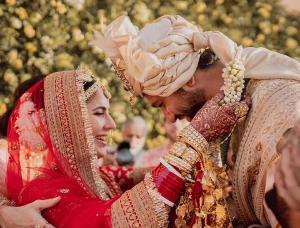 বৃহস্পতিবার রাতেই ভিকি কৌশল আর ক্যাটরিনা কাইফ বিয়ে করেছেন। তারকা জুটির বিয়ের ফটো আপাতত টক অফ দ্য টাউন। লাল শাড়িতে মাথায় ওড়না, কনের সাজে বিদেশিনী ক্যাটকে দেখে কে বলবে তিনি মুম্বাইতে এসেছেন বছর কয়েক আগেই। হিন্দু রীতিনিতি মেনেই বিয়ে করেন নায়িকা প্রেমিক ভিকির সাথে। ভারতের মাধোপুর জেলার সিক্স সেন্সেস ফোর্ট বারওয়ারায় বসেছিল বিয়ের আসল। বৃহস্পতিবার রাতেই নিজেদের সোশ্যাল মিডিয়ায় বিয়ের আসর থেকে ছবি পোস্ট করেছিলেন তাঁরা। তবে শুক্রবার সকালেই ছাড়লেন সেই বিলাসবহুল ফোর্ট। যদিও অতিথিরা এখনও আছেন সেখানেই। ফোর্টে আছেন ভিকি-ক্যাটের পরিবারও। জয়পুর এয়ারপোর্ট থেকে চার্টার্ড ফ্লাইট নিলেন নব্য-বিবাহিত জুটি। মনে করা হচ্ছে, ভিকি আর ক্যাট উড়ে গেলেন মালদ্বীপে হানিমুনের জন্য। বেশ টাইট শ্যুটিং শিডিউল রয়েছে ভিকির। হাতে পর পর ছবির কাজ। তাই বিয়ের পরদিনই বউকে নিয়ে উড়ে গেলেন মধুচন্দ্রিমায়। যদিও বিয়ের মতো, এই ব্যাপারটাও গোপনই রাখা হয়েছে। ভিকি-ক্যাট চার্টার্ড ফ্লাইট নিয়ে ঠিক কোথায় গেলেন, তা আপাতত গোপনই রাখা হয়েছে। ভিকি-ক্যাটের মুম্বাই রিসেপশনও হওয়ার কথা এর মধ্যেই। যদিও ওমিক্রনের আতঙ্কে নাকি সেখানেও কাটছাঁট করার কথা ভাবা হচ্ছে। ভিক্যাটের বিয়েতে বলিউড থেকে গিয়েছিলেন কবীর খান, মিনি মাথুর, নেহা ধুপিয়া, অঙ্গদ বেদিরা। বলিউডের সহকর্মী ও সংবাদমাধ্যমের প্রতিনিধিদের নিয়েই নাকি মুম্বইতে বসবে রিসেপশন। যদিও সময়-তারিখ এখনও অজানা।