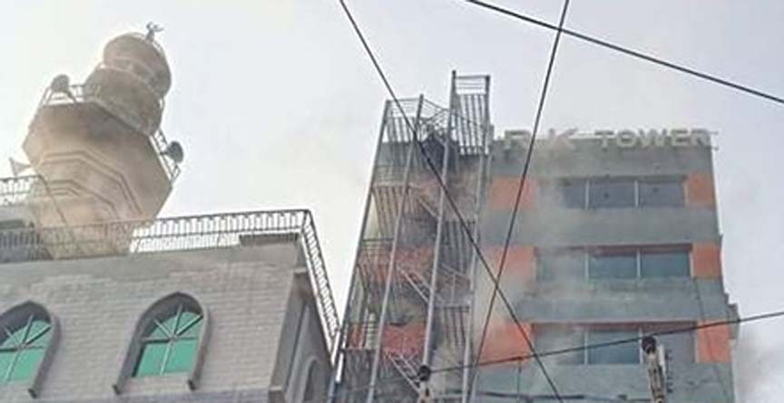 ঢাকার বাংলামোটরে বহুতল একটি ভবনে আগুন লেগেছে। সোনারগাঁও সড়কের আর কে টাওয়ার নামে ১০ তলা ওই ভবনের ছয় তলা থেকে ধোঁয়া উড়তে দেখা যাচ্ছে। শনিবার দুপুর সোয়া ১২টার দিকে ওই ভবনে আগুন লাগে। খবর পেয়ে ফায়ার সার্ভিসের চারটি ইউনিট ঘটনাস্থলে গিয়ে আগুন নিয়ন্ত্রণে কাজ করছে। তবে তাৎক্ষণিক আগুন লাগার কারণ ও ক্ষয়ক্ষতির পরিমাণ জানা যায়নি। অগ্নিকাণ্ডের কারণে সোনারগাঁও সড়কে যান চলাচল বন্ধ রয়েছে।