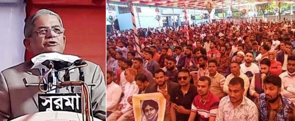 বিএনপির স্বাধীনতার সুবর্ণজয়ন্তী উদযাপন সিলেট বিভাগীয় সমন্বয় কমিটির উদ্যোগে ১৫ ডিসেম্বর সিলেট মুক্ত দিবস উপলক্ষে ১৮ ডিসেম্বর শনিবার বিকালে নগরীর রেজিস্ট্রারী মাঠে আয়োজিত সমাবেশে প্রধান অতিথির বক্তব্যে মির্জা ফখরুল ইসলাম আলমগীর এসব কথা বলেন।