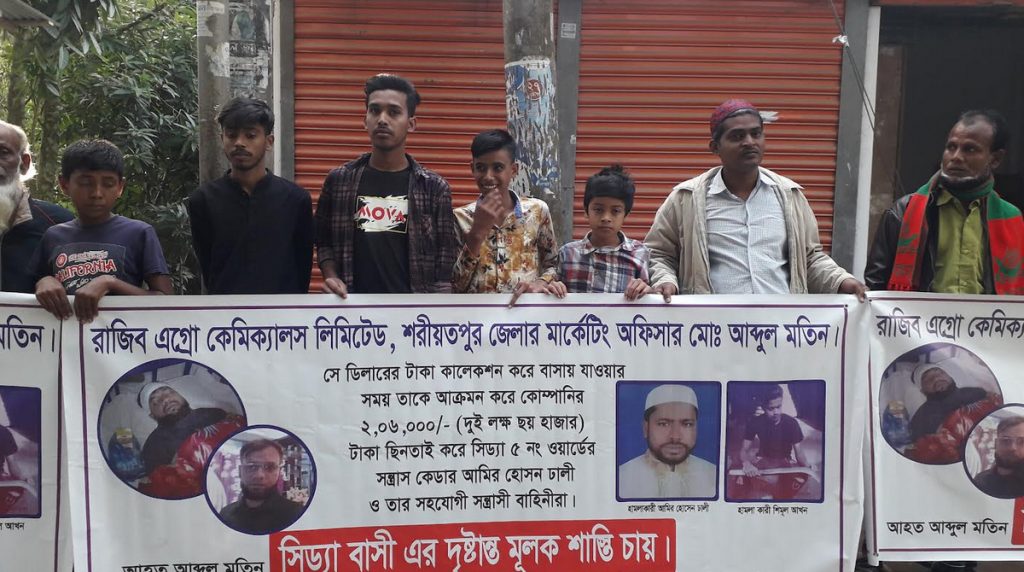 শরীয়তপুর জেলায় ডামুড্যা উপজেলা সিড্যা ইউনিয়নের রূপচাঁন মাদবরের ছেলে আব্দুল মতিন মাদবরকে পিটিয়ে আহত করে দুই লক্ষ টাকা নিয়ে যাওয়ার অভিযোগ উঠেছে। আব্দুল মতিন মাদবর দীর্ঘদিন যাবৎ রাজিব এগ্রো কেমিক্যাল কোম্পানি লিমিডেট শরীয়তপুর জেলা মার্কেটিং অফিসার হিসেবে একটি বেসরকারি কোম্পনিতে চাকরি করেন। গত ১৩ই ডিসেম্বর মার্কেট করে টাকা নিয়ে বাড়িতে যাওয়ার সময় পূর্ব সিড্যা ৫নং ওয়ার্ডের আমির ঢালী রাজিবের সাথে কথা কাটাকাটি করেন এক পর্যায় হাতাহাতি হওয়ার পথে আব্দুল মতিন ওই পথ দিয়ে বাড়ি যাওয়ার সময়, ০১। আমির ঢালী, পিতাঃ মৃত আব্দুল মজিদ ঢালী ০২। আলমগীর ঢালী (৪২), পিতাঃ মৃত আজিজ ঢালী ০৩। শিমুল আকন(১৮) পিতাঃ নান্নু আকন ০৪। শালিক ঢালী (২০) পিতাঃ মোহাম্মদ ঢালী ০৫। সামছু সরদার (৬৫) পিতাঃ মৃত রহমান আলী সরদার ০৬। নাঈম আকন (২৫) পিতাঃ নান্নু আকন ০৭। সিরাজ মাঝি (৫৫) পিতাঃ মৃত বকসু মাঝি ০৮। রুমান ঢালী (২৩) পিতাঃ কালাচান ঢালী। দুইজনকে দুই দিকে সরিয়ে দিলে পরে আমীর ঢালীর গ্রুপের লোকজন আব্দুল মতিনকে লাঠি দিয়ে মাথায় আঘাত করেন, মাটিতে লুটিয়ে পড়েন আশে পাশের লোকজন তাকে ডামুড্যা স্বাস্থ্য কমপ্লেক্সে জরুরী বিভাগে ভর্তি করার পর ডাক্টার রেফার করেন ঢাকা মেডিকেল কলেজে ভর্তি আছেন। আব্দুল মতিনের বড় ভাই বারেক মাদবর বলেন আমার ভাইকে আমির ঢালীর লোকজন পিঠিয়ে আহত করে আমার ভাইয়ের সঙ্গে থাকা টাকা পয়সা আমির ঢালীর লোকজন নিয়ে যায়। এ ব্যাপারে ডামুড্যা থানায় একটি অভিযোগ দায়ের করা হয়েছে। আমীর ঢালী বলেন আমি ৫নং ওয়ার্ডের ওয়াজে যাওয়ার সময় আমার সাথে রাজিবের কথা কাটা কাটি হয় সে আমাকে মারার চেষ্টা করছিলো। আব্দুল মতিন আমার চাচাতো ভাই আলমগীর ঢালীকে লাথি মারে এবং নিজের লাথিতে তিনি ইটের সাথে মাথায় আঘাত খায়। এ ব্যাপারে আমির ঢালীও ডামুড্যা থানা একটি অভিযোগ করেন।