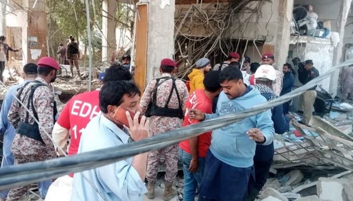 পাকিস্তানের দক্ষিণাঞ্চলীয় শহর করাচিতে একটি ব্যাংকে বিস্ফোরণের ঘটনায় অন্তত ১৪ জন নিহত হয়েছেন বলে পুলিশ জানিয়েছে। বিস্ফোরণে আহত হয়েছেন আরও অনেকে। ধারণা করা হচ্ছে, পয়ঃনিষ্কাশনের নালায় গ্যাস লিকের কারণে এমন ঘটনা ঘটতে পারে। খবর বিসিসির। প্রত্যক্ষদর্শীরা স্থানীয় গণমাধ্যমকে জানিয়েছেন, ধ্বংসস্তূপে বহু মানুষ চাপা পড়ে আছেন। মৃতের সংখ্যা আরও বাড়তে পারে বলে আশঙ্কা করা হচ্ছে। আহতদের করাচি সিভিল হাসপাতাল, ট্রমা সেন্টার এবং জিন্নাহ হাসপাতালে স্থানান্তরিত করা হচ্ছে। আহত দুইজনের অবস্থা আশংকাজনক, একজন ভেন্টিলেটরে এবং একজন আইসিইউতে রয়েছে বলে জানা গেছে। ঘটনাস্থলের ফুটেজে দেখা গেছে, হাবিব ব্যাংক নামে ওই বেসরকারি ব্যাংকটির ভবনের জানালা ও দরজা উড়ে গেছে, আশেপাশের যানবাহন ক্ষতিগ্রস্ত হয়েছে এবং নথিপত্র রাস্তায় ছড়িয়ে পড়েছে। পুলিশ কর্মকর্তা সারফারাজ নাওয়াজ সাংবাদিকদের বলেন, ‘আমাদের বিস্ফোরক দলগুলো বিস্ফোরণের ধরন খুঁজে বের করতে চেষ্টা চালিয়ে যাচ্ছে, তবে দৃশ্যত ব্যাংকের কাঠামোটি একটি ড্রেনের উপর তৈরি করা হয়েছিল এবং সেখানকার গ্যাস এই বিস্ফোরণের সম্ভাব্য কারণ হতে পারে।’ করাচি পুলিশের প্রধান অতিরিক্ত আইজি গোলাম নবী বলেছেন, ব্যাংকের নিচে একটি ড্রেনে গ্যাস লিক হওয়ার কারণে এই বিস্ফোরণটি হতে পারে বলে তারা ধারণা করছেন। তবে প্রকৃত কারণ বোমা নিষ্ক্রিয়কারী স্কোয়াডই বলতে পারবে। ঘটনাস্থলে মিডিয়ার সঙ্গে কথা বলার সময় সিন্ধুর স্থানীয় সরকার মন্ত্রী নাসির হুসেন শাহ বলেন, কর্তৃপক্ষ এই মুহূর্তে উদ্ধার তৎপরতায় মনোনিবেশ করছে। তবে দায়ীদের বিরুদ্ধে ব্যবস্থা নেওয়া হবে। সিন্ধুর মুখ্যমন্ত্রী মুরাদ আলি শাহ করাচি কর্তৃপক্ষকে বিষয়টি তদন্ত করার নির্দেশ দিয়েছেন। অন্যদিকে সিন্ধুর স্বাস্থ্যমন্ত্রী ডা. আজরা পেচুহোর নির্দেশে ট্রমা সেন্টার এবং জিন্নাহ হাসপাতালে জরুরি অবস্থা ঘোষণা করা হয়েছে। প্রাদেশিক স্বাস্থ্যমন্ত্রী এই ঘটনাকে ‘বড় ট্র্যাজেডি’ বলে আখ্যা দিয়েছেন। এদিকে টুইটারে হাবিব ব্যাংকের এক বিবৃতিতে বলা হয়েছে, গত ‘শনিবার বিকেলে আমাদের একটি শাখায় বিস্ফোরণের মতো একটি দুর্ভাগ্যজনক ঘটনা ঘটেছে। শোকাহত পরিবারের প্রতি আমরা গভীর সমবেদনা জানাচ্ছি।’