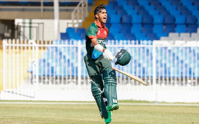 ব্যাট হাতে ছন্দে থাকা প্রান্তিক নওরোজ নাবিল জ্বলে উঠলেন আরও একবার। উপহার দিলেন দারুণ এক সেঞ্চুরি। তার ও মোহাম্মদ ফাহিমের কার্যকর দুটি ইনিংসে যুব এশিয়া কাপে নেপালের বিপক্ষে বড় পুঁজি পেল বাংলাদেশ। শারজাহতে শুক্রবার টুর্নামেন্টে নিজেদের প্রথম ম্যাচে টস জিতে ব্যাটিংয়ে নেমে ৪ উইকেটে ২৯৭ রান করেছে বাংলাদেশের যুবারা। তিনে নেমে ইনিংসের শেষ পর্যন্ত খেলেছেন নাবিল। ১১ চার ও এক ছক্কায় ১১২ বলে ১২৭ রান নিয়ে অপরাজিত ছিলেন তিনি। তিনটি করে ছক্কা-চারে ৫৪ বলে ৫৮ রান করে রিটায়ার্ড হার্ট হয়ে ফেরেন ফাহিম। চলতি মাসেই ভারতে হওয়া তিন দলীয় টুর্নামেন্টে বাংলাদেশের শিরোপা জয়ে বড় অবদান রেখেছিলেন নাবিল। একটি করে সেঞ্চুরি ও ফিফটিতে আসরের সর্বোচ্চ রান সংগ্রাহক ছিলেন তিনিই। এবার এশিয়া কাপের প্রথম ম্যাচেই তার ব্যাটে মিলল রানের দেখা। ব্যাটিংয়ে নেমে সাবধানী শুরু করে বাংলাদেশ। দুই ওপেনার ইফতেখার হোসেন ও মাহফিজুল ইসলাম পাওয়ার প্লেতে তোলেন ৩৫ রান। কিন্তু একাদশ ওভারেই কট বিহাইন্ড হয়ে বিদায় নেন মাহফিজুল। এরপর ইফতেখারও টিকেননি বেশিক্ষণ। ২ চারে ২১ রান করে তিনি কাটা পড়েন রান আউটে। আইচ মোল্লা ও নাবিলের ব্যাটে একশ পার করে বাংলাদেশ। আইচও খেলতে পারেননি বড় ইনিংস। ইনিংসে বাংলাদেশ সবচেয়ে বড় দুটি পায় এরপরই। দারুণ ব্যাটিংয়ে ফাহিম ও নাবিল বাড়াতে থাকেন দলের রান। তাদের ব্যাটে দুইশ পেরিয়ে এগিয়ে যেতে থাকে দল। এই জুটিতে দুইজনেই তুলে নেন ফিফটি। নাবিলের পঞ্চাশ আসে ৬০ বলে, ফাহিমের ৪৮। ফিফটির পরই হ্যামস্ট্রিংয়ে চোট পেয়ে মাঠ ছাড়েন ফাহিম। শেষ হয় নাবিলের সঙ্গে তার ১১৭ রানের জুটি। দায়িত্ব নিয়ে দলের রানের চাকা সচল রাখেন নাবিল। সেঞ্চুরিতে পা রাখেন তিনি ৯৮ বলে, চার মেরে। মেহরব হাসান শেষ দিকে ৩ চারে করেন ১৫ বলে ২১ রান। বাংলাদেশ পায় তিনশর কাছাকাছি সংগ্রহ।