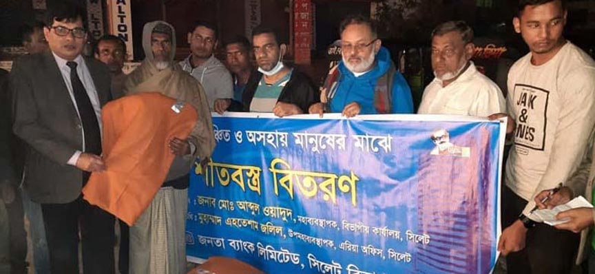 সিলেটের বিভিন্ন স্থানে জনতা ব্যাংক লিমিটেড সিলেট বিভাগীয় কার্যালয়ের উদ্দোগে গরীর অসহায় শীতার্তদের মধ্যে শীতবস্ত্র বিতরণ করা হয়েছে।