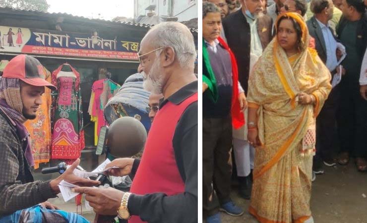নারায়ণগঞ্জ সিটি করপোরেশন (নাসিক) নির্বাচনকে কেন্দ্র করে পুরোদমে জমে উঠেছে ভোটের প্রচারণা। আগামী ১৬ জানুয়ারি এ সিটিতে ভোটগ্রহণের কথা রয়েছে। দিন যতই ঘনিয়ে আসছে ততই মেয়র ও কাউন্সিলর প্রার্থীদের দৌড়ঝাঁপ বাড়ছে। কর্মী-সমর্থকদের নিয়ে ছুটে চলেছেন ভোটারদের দ্বারে দ্বারে। চাইছেন নিজ নিজ প্রতীকে ভোট। দিচ্ছেন উন্নয়নের আশ্বাস। ভোটের আগে প্রচারণার মাঠেও সরব দুই হেভিওয়েট মেয়র প্রার্থী। আওয়ামী লীগ মনোনীত মেয়র প্রার্থী ডা. সেলিনা হায়াৎ আইভী শুক্রবার (৭ জানুয়ারী) সকাল থেকে সিটির ১১ নম্বর ওয়ার্ডে প্রচারণা চালান। তিনি হাজীগঞ্জ, এসিআই, তল্লা, কিলারপুলসহ বিভিন্ন এলাকায় প্রচারণা চালিয়ে নৌকায় ভোট চান। এ সময় নারী ভোটারা তাকে ফুল ছিটিয়ে বরণ করেন। এদিকে, স্বতন্ত্র প্রার্থী তৈমুর আলম খন্দকার শুক্রবার (৭ জানুয়ারী) সকাল থেকে সিটি করপোরেশনের ২৫ নম্বর ওয়ার্ডে প্রচারণা চালান। এ সময় কর্মী-সমর্থকরা তার সঙ্গে ছিলেন। প্রচারণাকালে সেলিনা হায়াৎ আইভী বলেন, আমি যেখানেই যাচ্ছি জনগণের সাড়া পাচ্ছি। আমার পাশে লোকজন ছুটে আসছে। আমি জয়ের বিষয়ে শতভাগ আশাবাদী। ইনশাল্লাহ আমিই জিতবো। প্রতিদ্বন্দ্বী প্রার্থীর অভিযোগ প্রসঙ্গে আইভী বলেন, সকালে আমরা মাইকিং করছি না। বেলা ২টা থেকে করছি। তিনটি ওয়ার্ডে মিলে একটি মাইকিং করা হচ্ছে। আজকে থেকে বাড়ানো হবে। প্রতিদ্বন্দ্বী প্রার্থীর (তৈমুরের) মাইকিং চলছে বেশি। পাল্টাপাল্টি অভিযোগ করে লাভ নেই। জনতা আমার পাশে আছে। কারণ নারায়ণগঞ্জের মা-বোনরা দীর্ঘদিন ধরে আমাকে দেখেছে। নৌকাই জয়যুক্ত হবে, এ জন্যই উনি (তৈমুর আলম) দিশেহারা হয়ে অনেক কিছু বলছেন। নারায়ণগঞ্জে উৎসবমুখর পরিবেশ সৃষ্টি হয়েছে। ওই প্রার্থীও (তৈমুর) যেখানে যাচ্ছেন সেখানে লোকসমাগম হচ্ছে। কোথাও তো কোনও জায়গায় বাধা দেওয়া হয়নি। আমি আমার প্রচারণা চালাচ্ছি। তৈমুর কাকা তার প্রচারণা চালাচ্ছেন। কোনোরকম অসন্তোষ বা বিঘœতা দেখা দেয়নি। তিনি আরও বলেন, নারায়ণগঞ্জের নির্বাচনি চরিত্রটা হলো নির্বাচনের আগে ও পরে সবকিছু মিলে একটি উৎসবমুখর পরিবেশ থাকে। সেটা ধরে রাখার চেষ্টা করবো। জেলা ও মহানগর আওয়ামী লীগ এবং অঙ্গ সংগঠনের সব নেতাকর্মীরা আমার সঙ্গে আছেন। আমি যেখানেই যাচ্ছি, সেখানেই আওয়ামী লীগের তৃণমূলসহ সব নেতাকর্মীরা আমার সঙ্গে কাজ করছেন। অপরদিকে, স্বতন্ত্র প্রার্থী তৈমুর আলম খন্দকার বলেন, আমার ভোট আমি দেবো, যাকে খুশি তাকে দেবো। এই বিশ্বাস নিয়ে আমাকে চলতে হবে। আমার বিশ্বাস লোকজন আমাকে ভোট দেবেন। এ সিটিতে সাড়ে পাঁচ লাখের মতো ভোট আছে। ক্যান্ডিডেট হিসেবে আমি সবার ভোট চাই। প্রধানমন্ত্রী বলেছেন, তৈমুর আলম খন্দকার জেতার মতো লোক। তিনি বিদেশি সাংবাদিকদের কাছে 