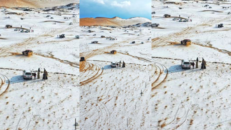 বরফের চাদরে ঢেকে গেছে সৌদির মরুভূমি