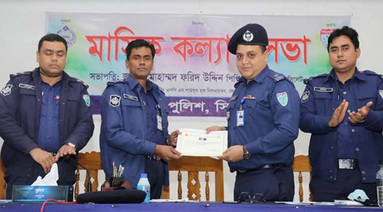 বৃহস্পতিবার (৩ ফেব্রুয়ারি) সিলেট জেলা পুলিশের মাসিক কল্যাণ ও অপরাধ সভা অনুষ্ঠানে অতিরিক্ত পুলিশ সুপার (সদর) মো: লুৎফর রহমান কে এ সম্মাননা প্রদান করেন জেলা পুলিশ সুপার।