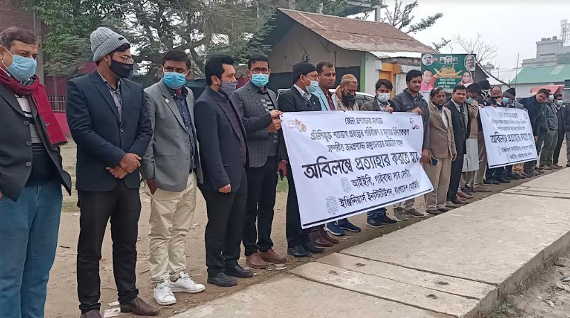 গাইবান্ধায় এডিপিভুক্ত শতভাগ প্রকল্পের পরিবীক্ষণ ও মূল্যায়ন নিশ্চিতকরণ সম্পর্কিত আদেশ বাতিলের দাবিতে মানববন্ধন
