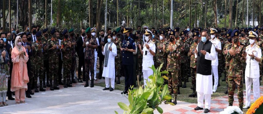 রাষ্ট্রপতির পক্ষে রাজধানীর বনানীর সামরিক কবরস্থানে নিহত সেনা কর্মকর্তাদের কবরে রাষ্ট্রপতির পক্ষে তার সামরিক সচিব মেজর জেনারেল এস এম সালাহউদ্দিন ইসলাম এবং প্রধানমন্ত্রীর পক্ষে তার সামরিক সচিব মেজর জেনারেল নকিব আহমেদ পুষ্পস্তবক অর্পণ করেন।