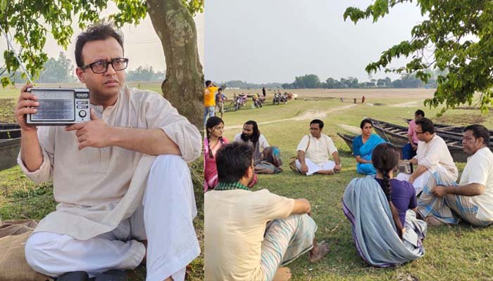 ঢাকা থেকে নব্বই কিলোমিটারের পথ মানিকগঞ্জের হরিরামপুর থানা। এই থানার অন্তর্গত পদ্মা নদীর পাড়ে অবস্থিত হরিহরদিয়া গ্রাম। পদ্মার ঢেউয়ের সঙ্গে সংগ্রাম করে বেচে থাকে এ অঞ্চলের মানুষ। যে গ্রামের কোনো বাড়িতে নেই টিভি। আর ইন্টারনেট তো দূরের কথা। গ্রামের মানুষ বাজারে গিয়ে চায়ের দোকানে গিয়ে বসে দেখেন বাংলা ছবি। এর বাইরে টিভিতে ছবি দেখার সুযোগ খুব একটা হয় না তাদের। সেই গ্রামেই এবার স্বশরীরে হাজির হলেন চিত্রনায়ক রিয়াজ। এক কিলো হেটে গিয়ে বাজারের চায়ের দোকানে যে নায়কের ছবি দেখেন সেই নায়ককে বাস্তবে দেখে গ্রামবাসীর চোখ তো ছানাবড়া! রিয়াজকে এভাবে দেখতে পাবেন সেটা তাদের কাছে অকল্পণীয়। এর আগে কখনও টেলিভিশনের পর্দায় দেখা নায়কদের নিজ চোখে দেখার সুযোগ হয়নি এ গ্রামের কোনো মানুষের। শুধু রিয়াজকেই দেখছেন না তারা। দেখছেন অভিনেত্রী জাকিয়া বারি মম, প্রাণ রায় ও নাদের চৌধুরীকেও। কারণ তারা গঙ্গদরদিয়া গ্রামে এসেছেন অনন্য মামুন পরিচালিত রেডিও নামে একটি ছবির শুটিং করতে। থাকবেন ১ মার্চ পর্যন্ত। সরেজমিনে দেখা গেলো গঙ্গাদরদিয়া গ্রামের চরের মানুষ এতটাই আন্তরিক পানি খেতে চাইলে শরবত খাওয়াচ্ছেন শুটিংয়ে আসা লোকদের। শুটিংয়ে পঞ্চাশোর্ধ এক মহিলাকে দেখা গেলো রিয়াজের কাছে ছুটে আসতে। এসে বললেন, বাবা তোমাকে একবার ছুয়ে দেখতে চাই। রিয়াজও তাকে অনুমতি দিলেন। রিয়াজের গাল মাথায় হাত রেখে ছুঁয়ে দেখলেন তিনি। খুশিতে আত্মহারা হয়ে করে গেলেন আশিরবাদ। ভক্তেদের এমন কা-ে অনেকটা আবেগপ্লাপুত হয়ে গেলেন রিয়াজ। পরে ক্যামেরার সামনে বললেন,’ শুটের মাঝে আমার মায়ের বয়সী যে হুট করে এসে আমার গালে হাত বুলিয়ে আদর করে দোয়া করলেন। সেটা তো আপনারা দেখেছেন। চরে এমন বয়সী একজনের আমার প্রতি এই ভালোবাসা মুগ্ধ করেছে। যদিও ওঁর আদরের জন্য আমাকে নতুন করে আবার মেকআপ নিতে হয়েছে। তাদের এমন ভালোবাসার জন্যই তো আজকে আমি রিয়াজ। ‘বাসিন্দারা টেলিভিশনে নিজের গ্রামকে দেখতে পারবেন কি না, তা জানা না গেলেও পরিচালক জানিয়েছেন ‘রেডিও’ সিনেমার প্রিমিয়ার হচ্ছে আগামী ৭ মার্চ। মুক্তি এখনও চূড়ান্ত নয়। রেডিওর গল্পটা ১৯৭১ সালের ৭ মার্চ জাতির জনক বঙ্গবন্ধু শেখ মুজিবুর রহমানের ভাষণকে কেন্দ্র করে। এই ভাষণকে কেন্দ্র করে একটি গ্রামের গল্প বুনেছেন অনন্য মামুন। দুপুরে শুটিং স্পটে গিয়ে দেখা গেল কয়েক জনকে নিয়ে ‘জয় বাংলা’ স্লোগান দিচ্ছেন নায়ক রিয়াজ। এতে তিনি তিনি অভিনয় করছেন শিক্ষকের ভূমিকায়। শুটিং বিরতিতে রিয়াজ জানালেন, ‘এই ধরনের ঐতিহাসিক প্রেক্ষাপট নিয়ে সিনেমা বানাতে আমাদের অনেক সংকট আছে। সেসব সংকটের মাঝে পরিচালক অনন্য মামুন হেসেখেলে সিনেমাটি নির্মাণ করছে, সেটা আমার খুব ভা