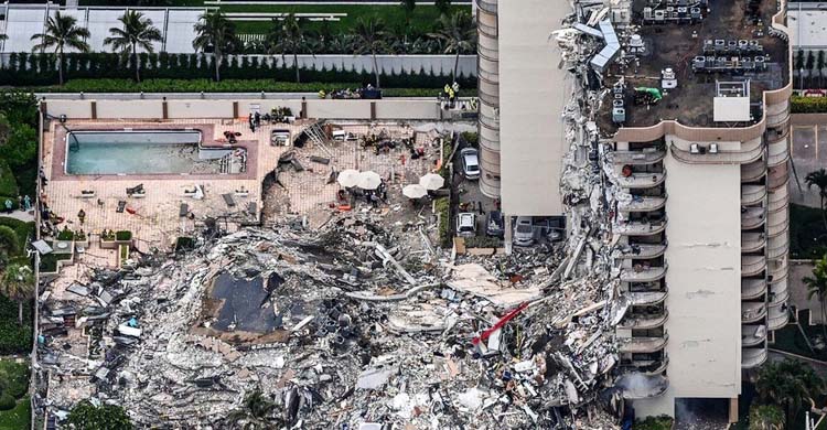 যুক্তরাষ্ট্রের মিয়ামি বিচের কাছে সমুদ্রের সামনে একটি অ্যাপার্টমেন্ট ব্লকের ধ্বংসস্তুপের মধ্যে উদ্ধারকারী দল তল্লাশী অভিযান চালিয়ে যাচ্ছে। বৃহস্পতিবার রাতে আংশিকভাবে ধসে পড়া ভবনটির ধ্বংসস্তুপ থেকে ১ জনের মৃতদেহ উদ্ধার করা হয়েছে, এবং আরো ৯৯ জনের প্রাণহানির আশঙ্কা করা হচ্ছে।